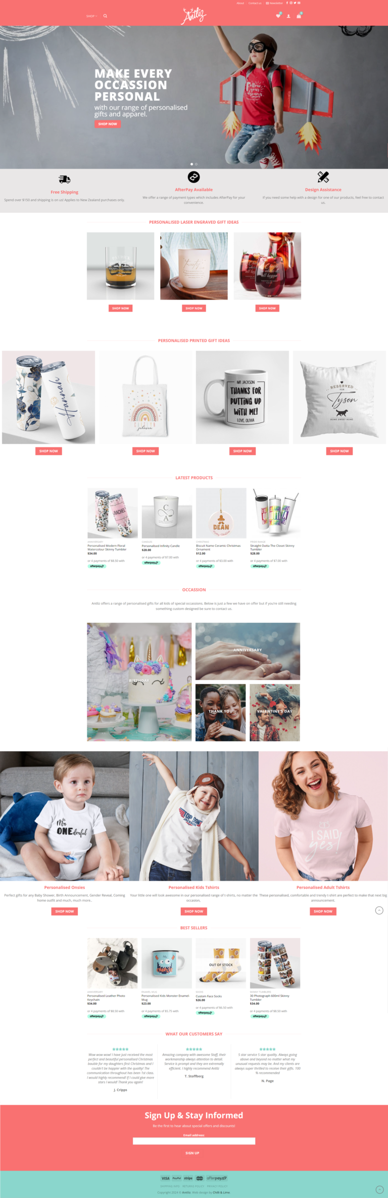 Antliz started initially as a design services for invitations and stationery and evolved into a full-blown personalised gifting and apparel store. Services offered included design and printing of drinkware, bags, decor and a range of engraving products.